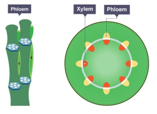 Jaringan pengangkut terdiri dari jaringan xilem (pembuluh kayu) dan jaringan floem.